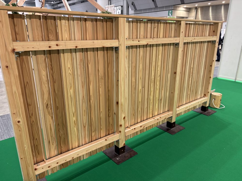 木製フェンスの展示など、