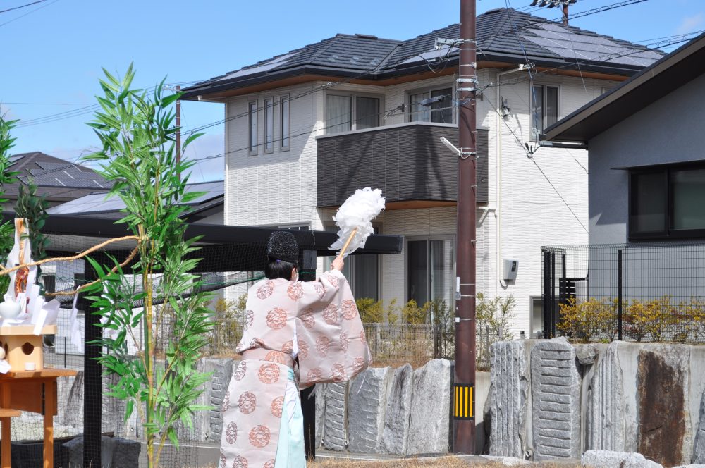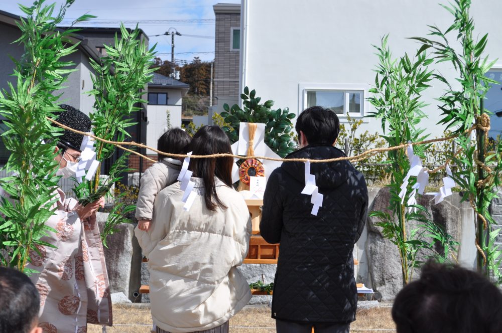 地鎮祭は、土地の神様に、土地を利用させてもらうことの許しを得て、工事の安全と完成後の家の繁栄を祈る儀式。