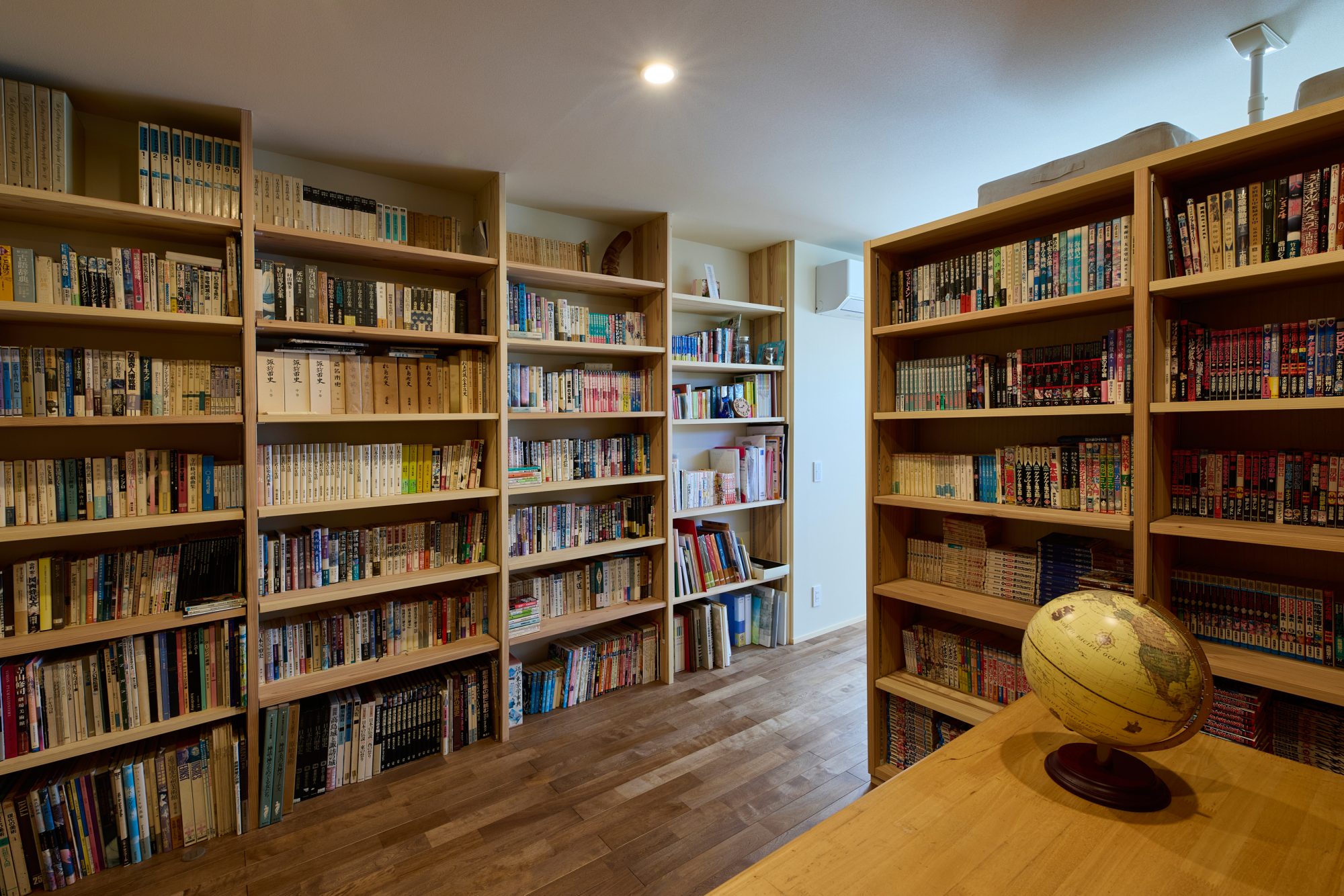 収納を置き家具で考えるのではなく、空間として一緒に考えるから、すっきりとしながら天井までたっぷり使える無駄のない収納をつくることができる。