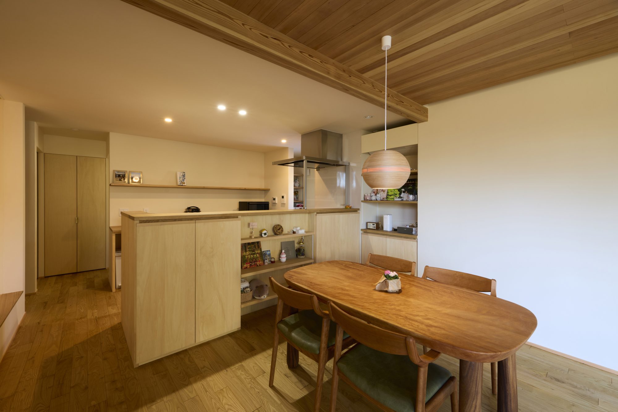 といった家具もたくさん納品させていただき、ツガの板貼り天井や造作のキッチンカウンターと共に、木の空間づくりにこだわりぬいています。