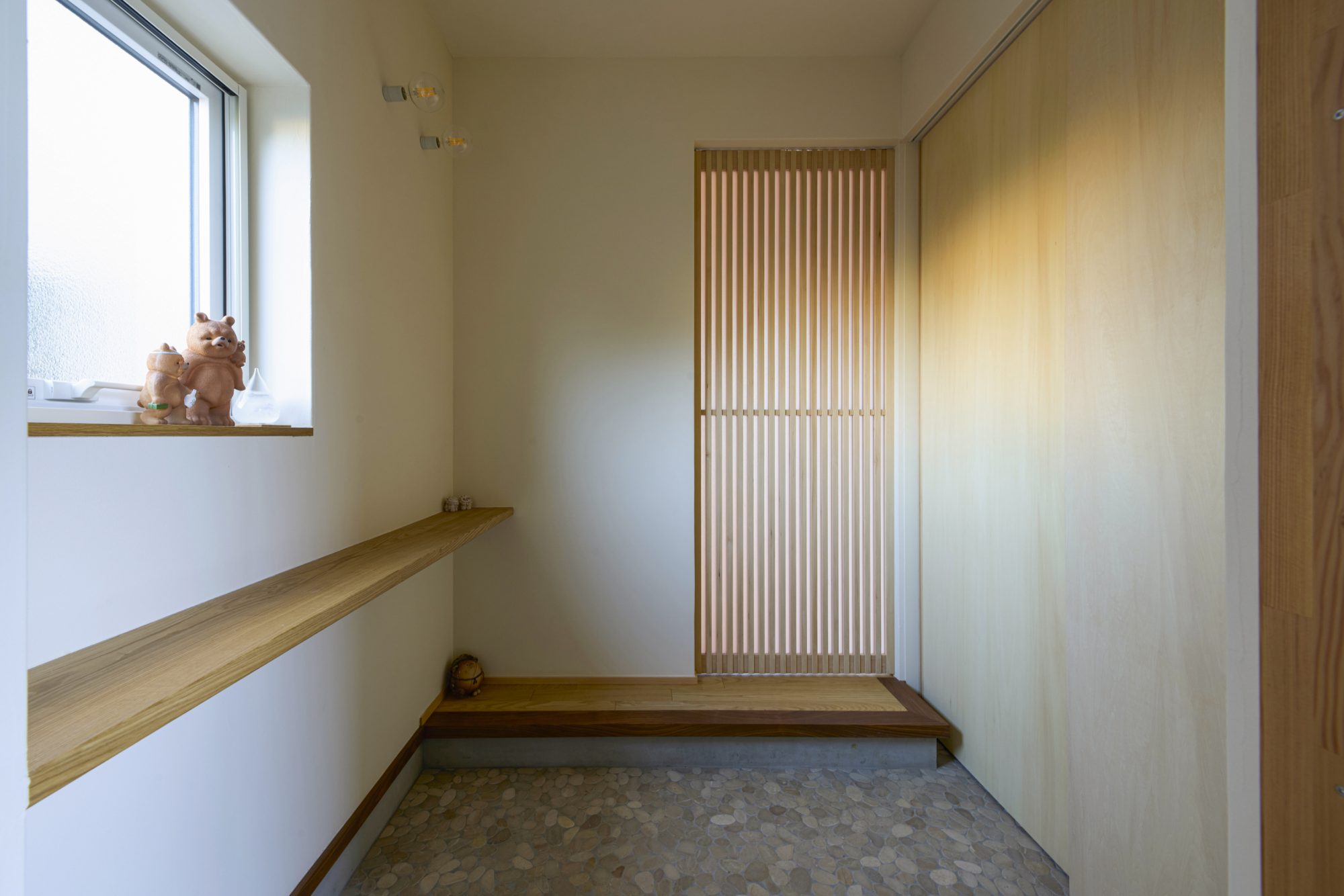 ショーハウス[はるのてらす]と同じ雰囲気にしたいという、施主様のご希望もあり、ショーハウス[はるのてらす]と同じ作り方をした建具を採用いたしました。